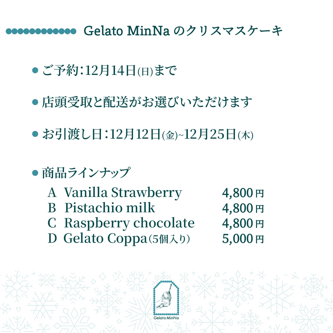 12月12日(金)〜12月25日(木)店頭にて。