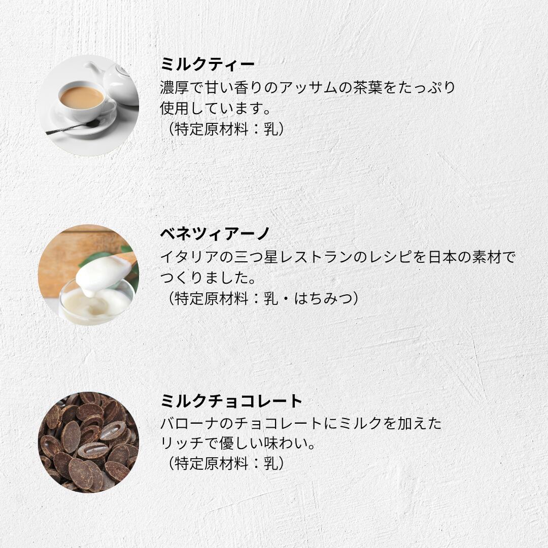 ※苦手なフレーバーは、「ミルク」か「ベネツィアーノ(ヨーグルトはちみつ)」へのご変更も可能です。ご注文メモにご記載ください。